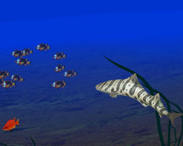 This company uses boid models to produce realistic animation sequences of crowd behavior, here is an attempt to replicate Reynold's results, and this woman created a fish schooling model that includes predators (below).