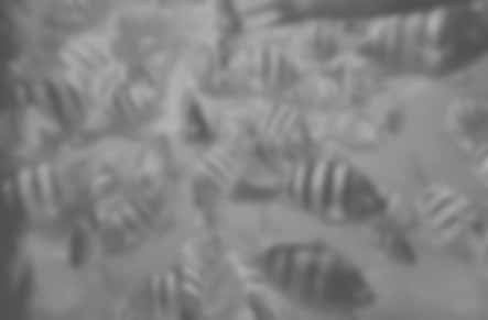 For example, the photograph on the right shows a school of Sergeant Majors, taken under clear conditions, but altered to simulate how they would have looked under more typical underwater conditions. If you click on the image, you will see the same fish under clear conditions. Notice in particular that it is impossible to distinguish between the eyes of the fish in the murky picture. (Predator fish often aim for the eyes of their victims, since they are reliable indicators of location and heading.)