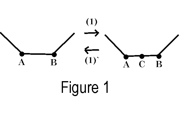 1` (converse of 1) If AC and CB are two adjacent edges of K such that if C is erased AB becomes a straight line, then we may remove the point C. (see figure 1)