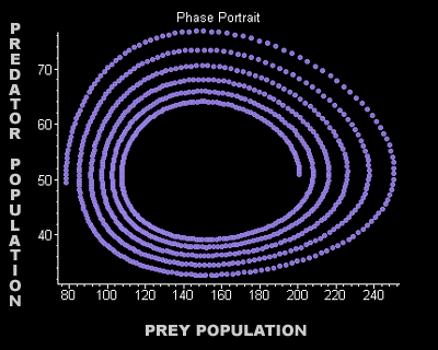 behind the Lotka-Volterra predator-prey model. The following graph was produced